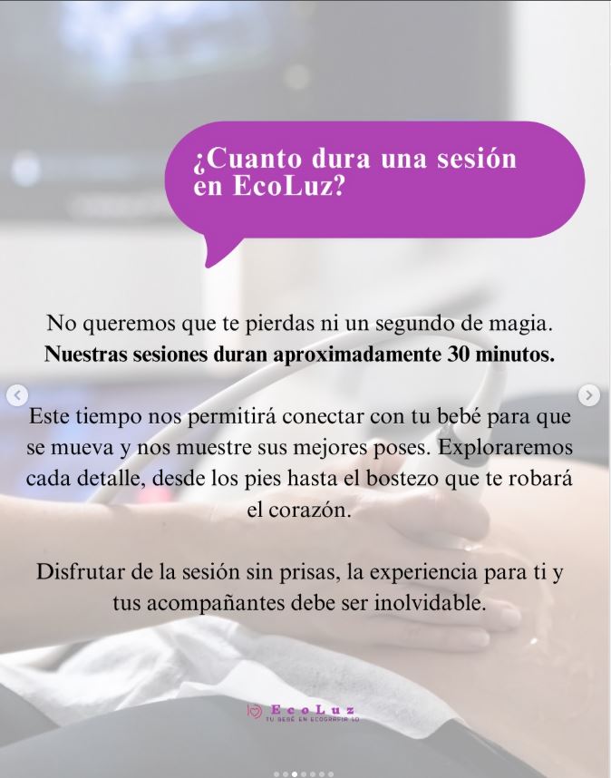 En EcoLuz 5D no vienes solo a ver imágenes… vienes a vivir una experiencia.Nuestras sesiones duran aproximadamente 30 minutos, en los que disfrutaremos viendo a tu bebé moverse, bostezar, tocarse…